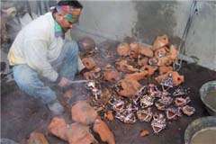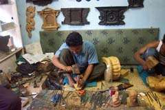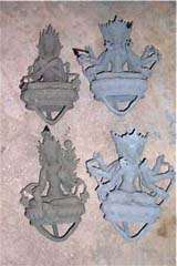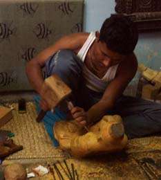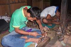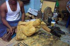 These photos show the transformation of the raw copper, from being poured into the clay molds, and then worked on until they are finally painted carefully by hand. And then there are the wooden statues…