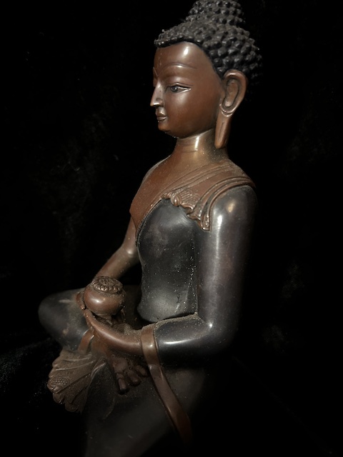 Amitabha ( infinite light), the Buddha of the west, possesses discrimminating wisdom and the compassion that sees all beings in all their diversity – his mantra is om amideva hrih