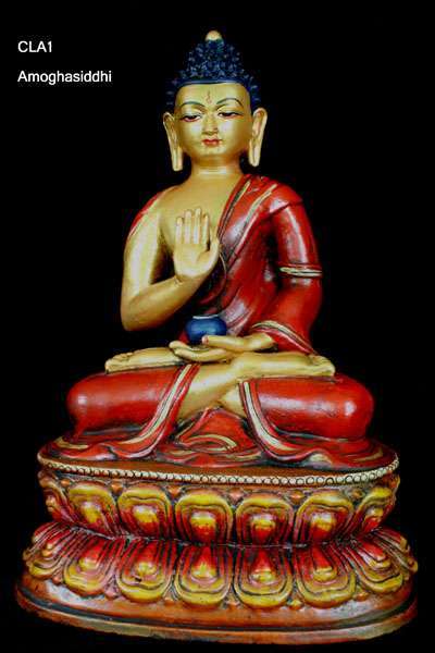 Painted Clay Amoghasiddhi Buddha statue 30cm