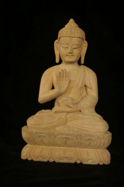 6-inch wood Amoghasiddhi Buddha statue. Hand carved.