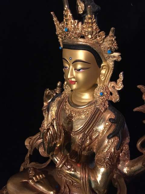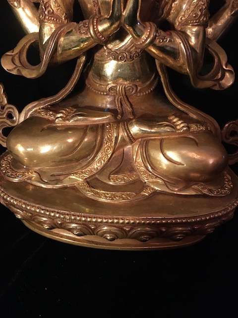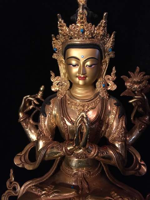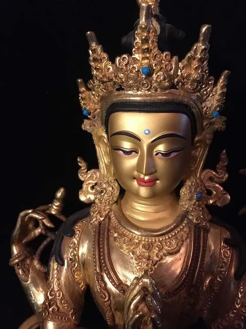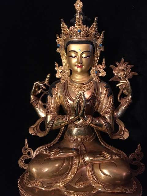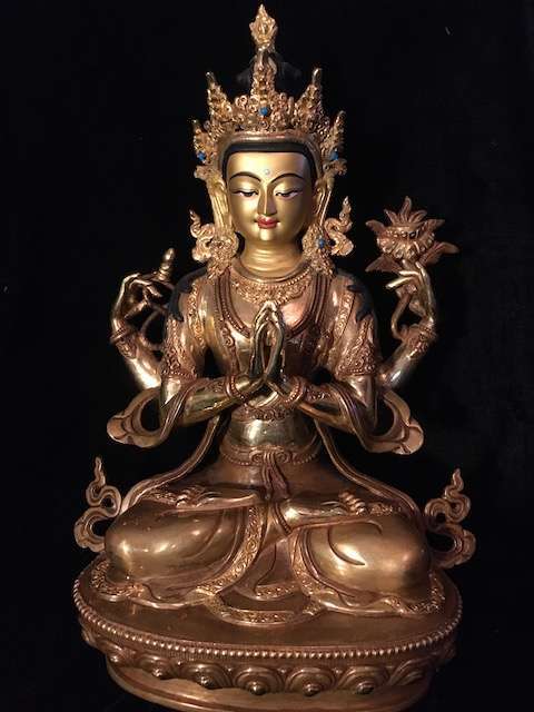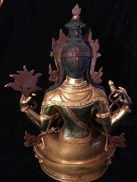 Part Gold-plated Copper Avalokitesvara / Chenrezig statue 33 cm