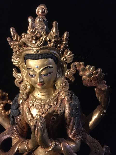 Part gold plated Copper Avalokitesvara/Chenrezig statue