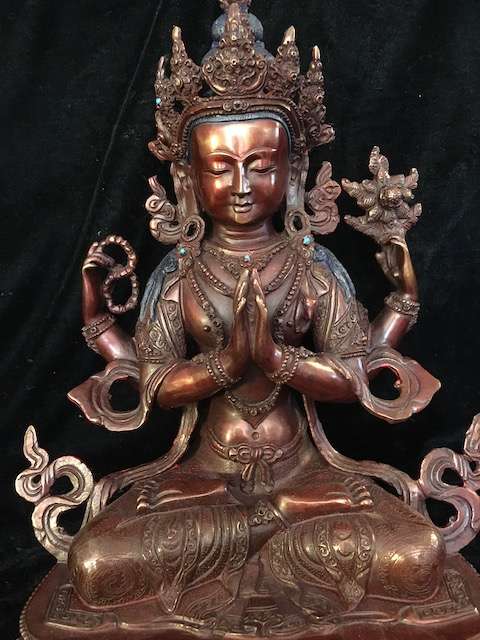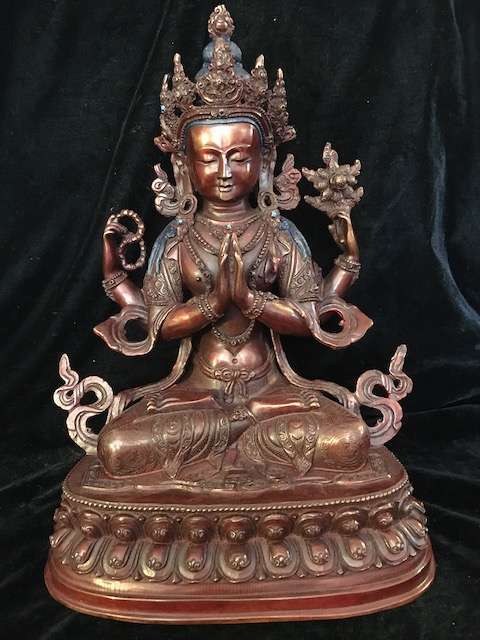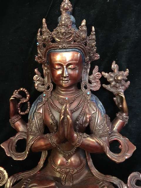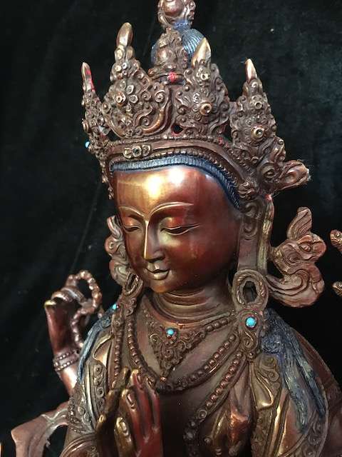 Avalokitesvara statue 35cm copper with fine hand carved detail