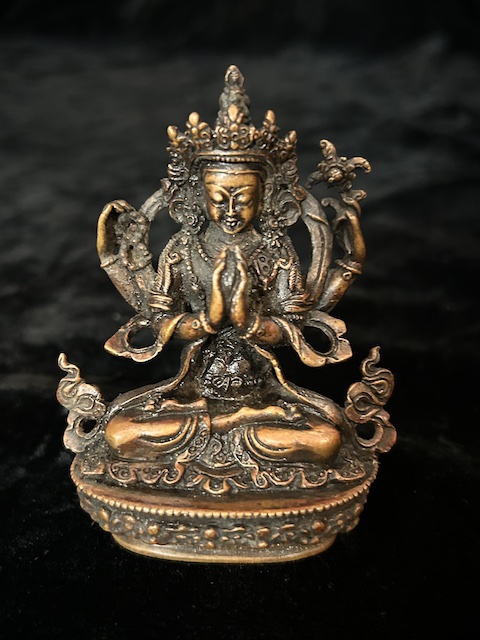 Avalokitesvara statue 9cm copper. Chenrezig statue