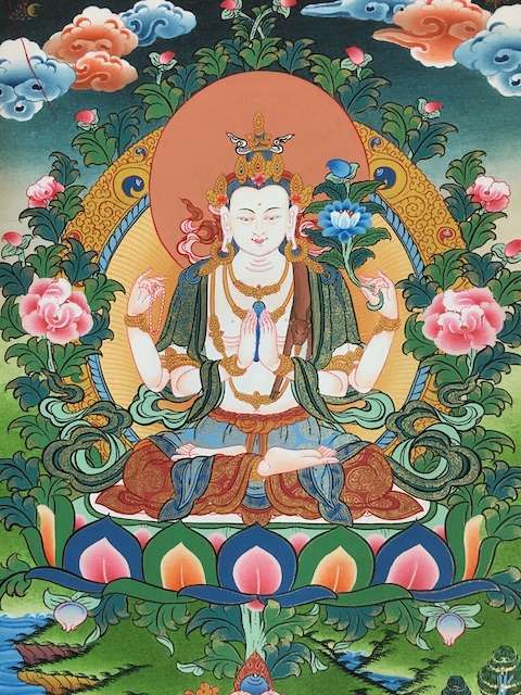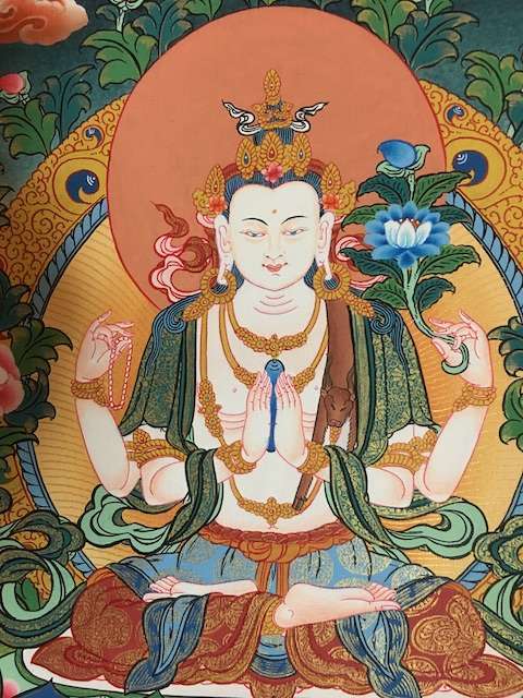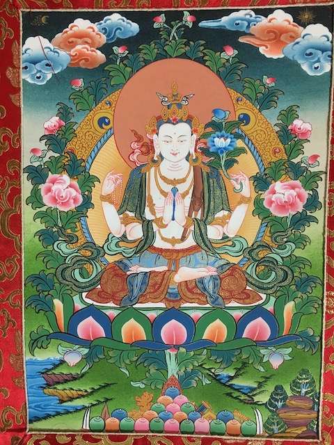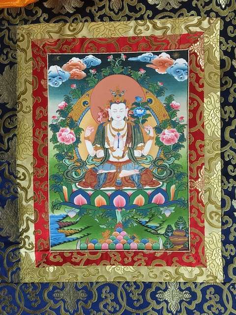 Avalokitesvara Thangka picture size 25 x34cm 50×75 with brocade surround