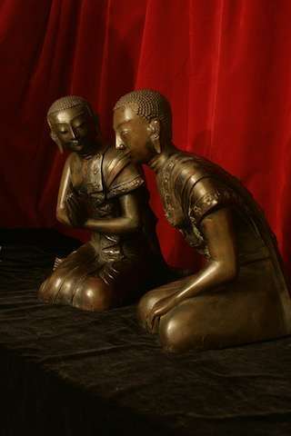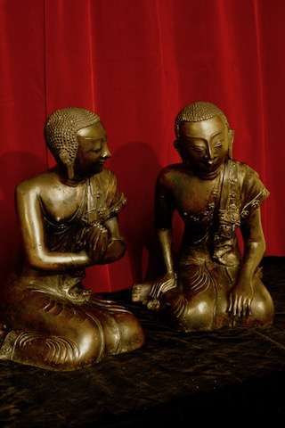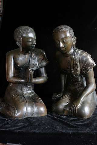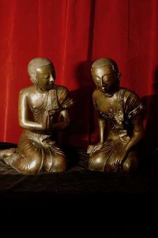 Beautiful and rare set of Monks/Arahats at ease. Bronze, from Thailand. About 50-60 years old