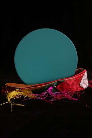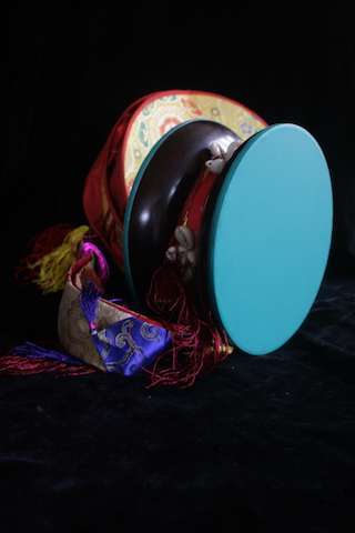 Tibetan ritual drum 19cm wide. High quality, dark wood, lovely sound