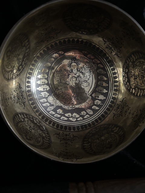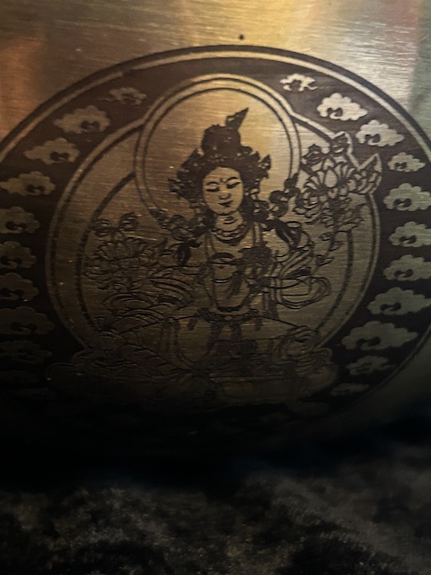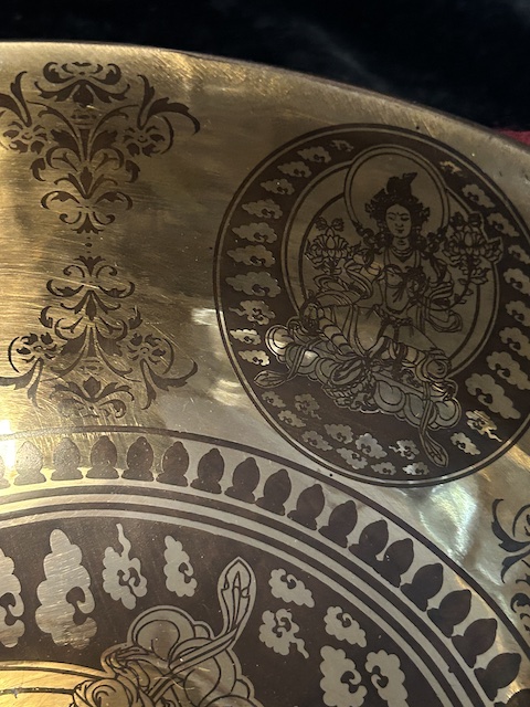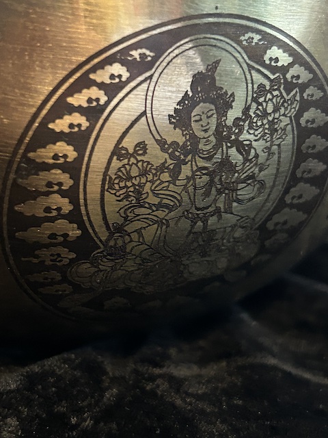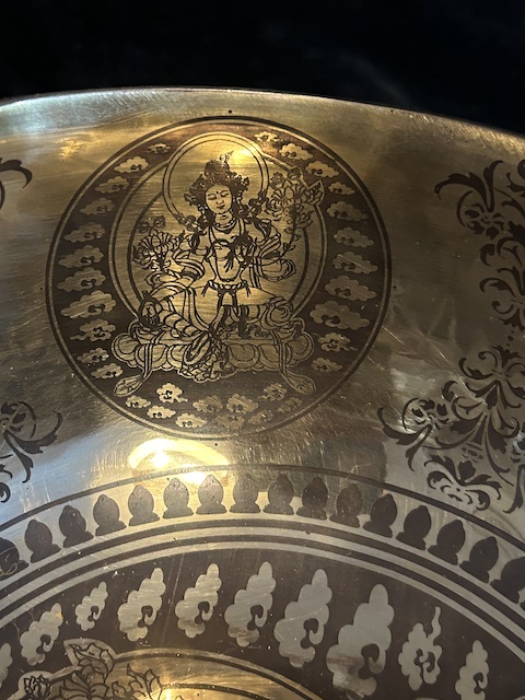 GREEN TARA ETCHED SINGING BOWL 18cm