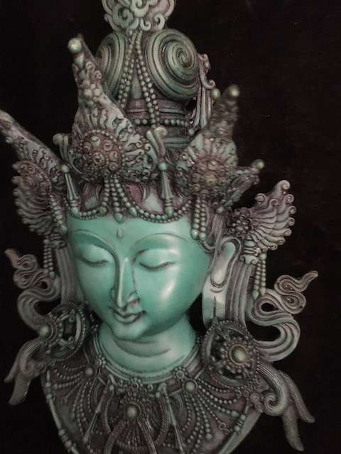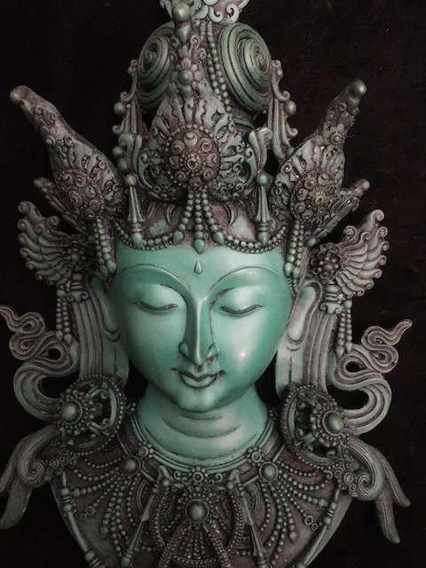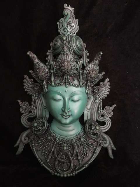 GREEN TARA HEAD HANGING RESIN 42cm quantity