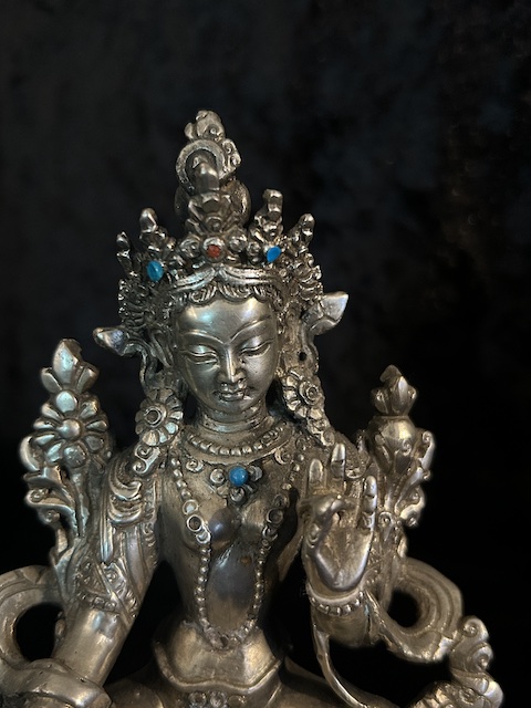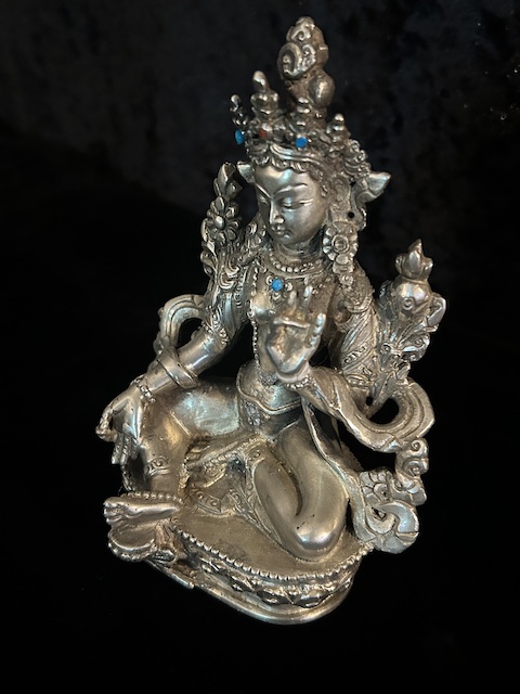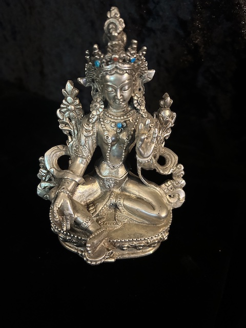 GREEN TARA STATUE 15cm Copper silver finish