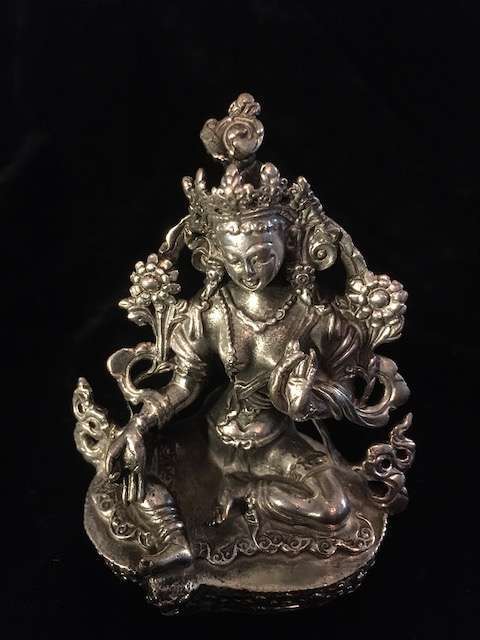 Green tara statue silver finished copper statue