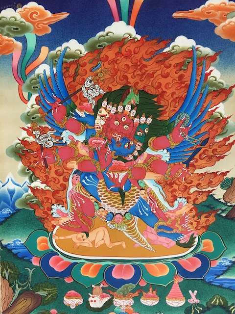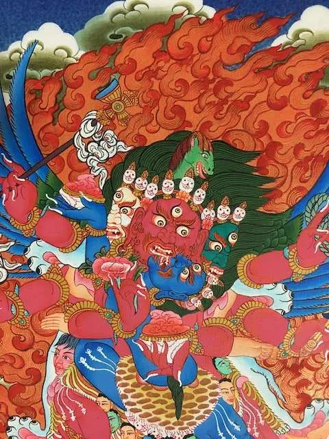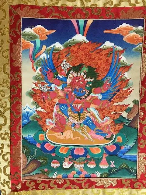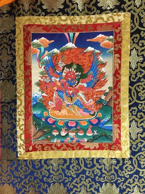 Hayagriva Thangka 25x34cm picture size 50 x75 with brocade