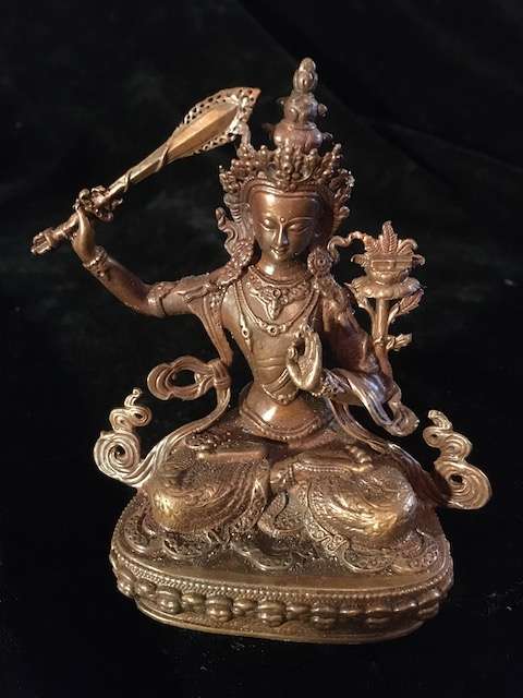 MANJUSRI STATUE 10cm copper Fine hand carved finish