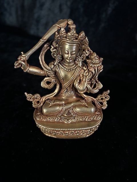 MANJUSRI STATUE 9cm GOLD PLATED copper