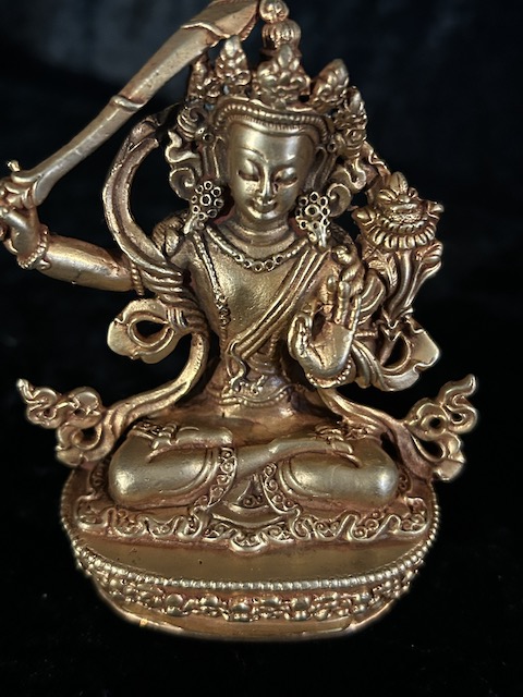 / MANJUSRI STATUE 9cm GOLD PLATED copper