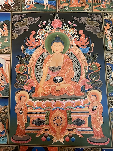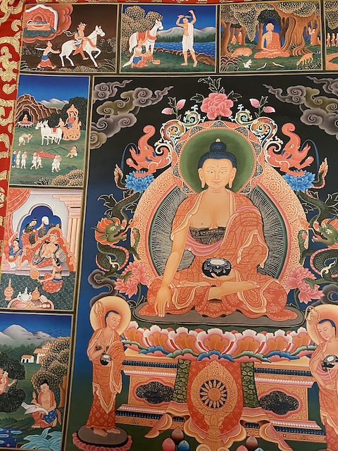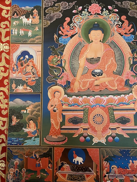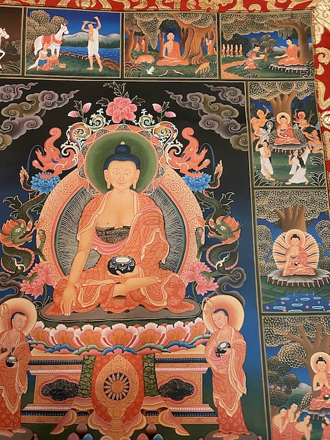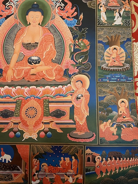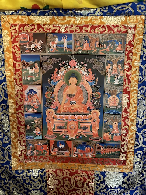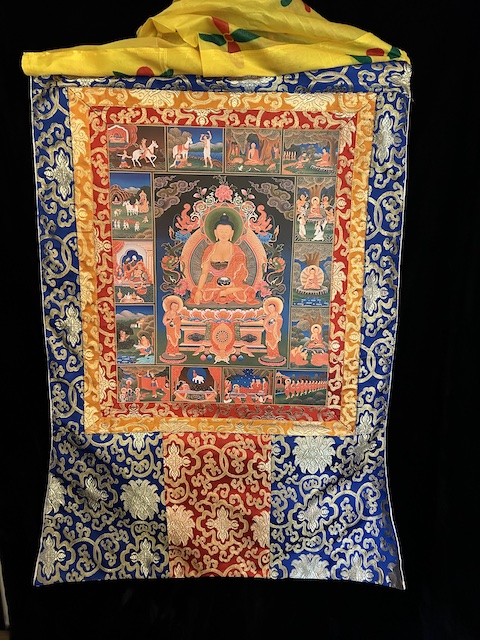 Life of Buddha thangka 62 x100cm with brocade frame size