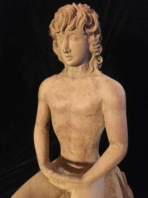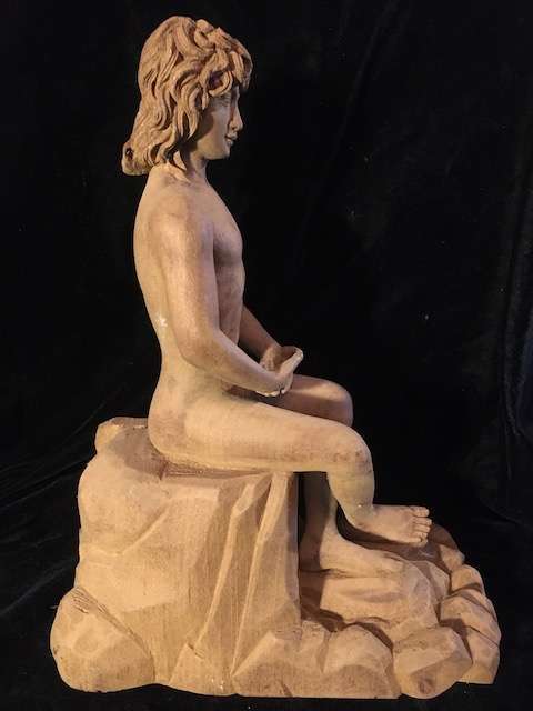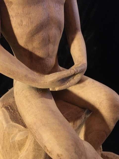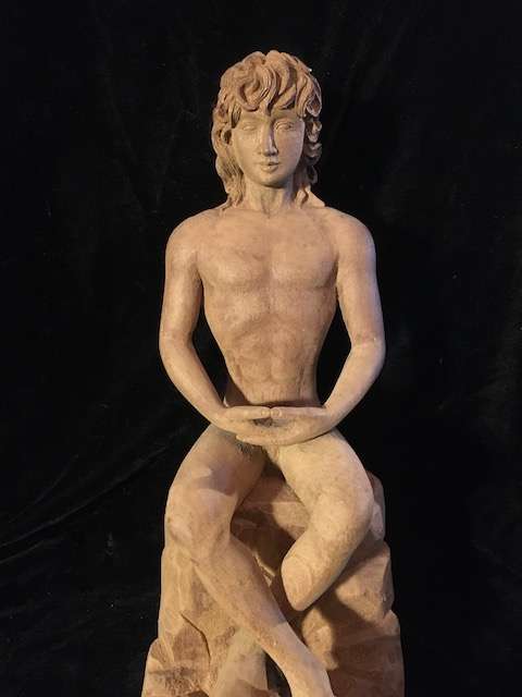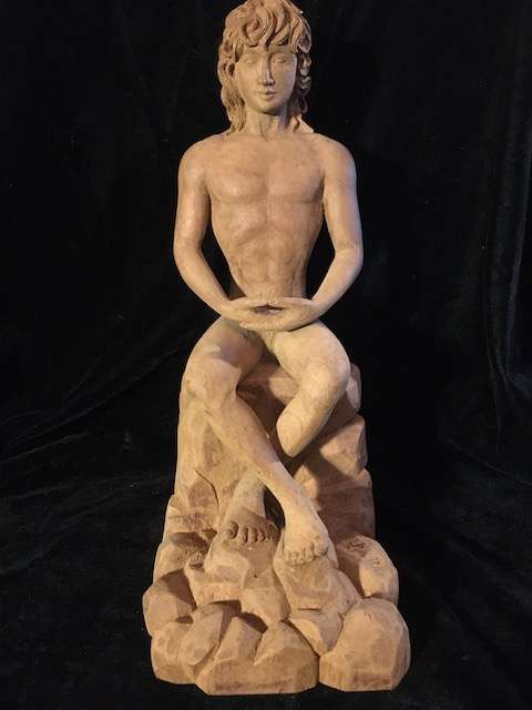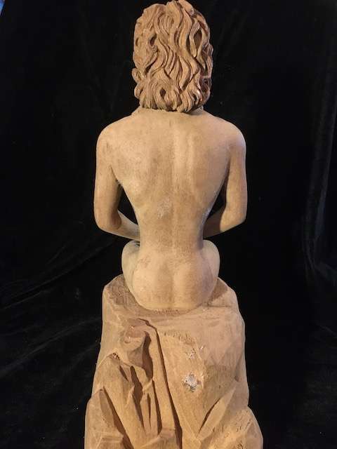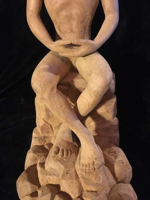 Meditating Figure Wood 25cm in Tuma wood. Hand carved unique piece. Only one made