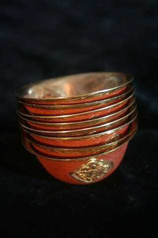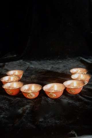 Copper and gold offering bowls 8cm wide 4cm high set of 8