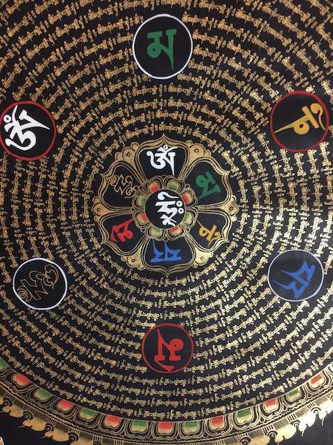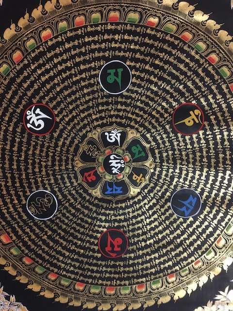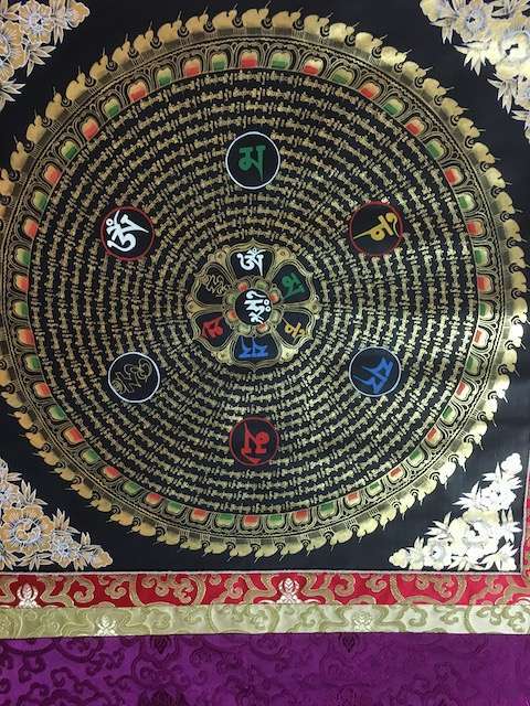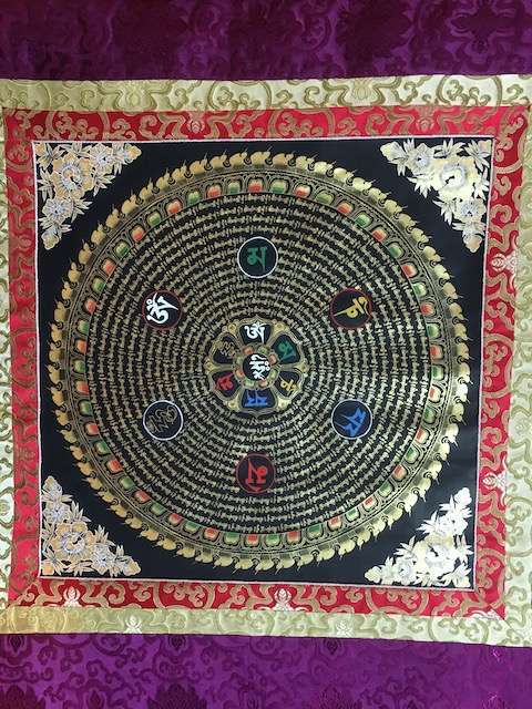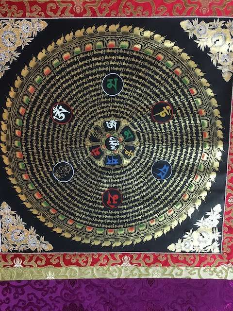 Hand painted Om mane padme hum thangka 47 x47 picture size,