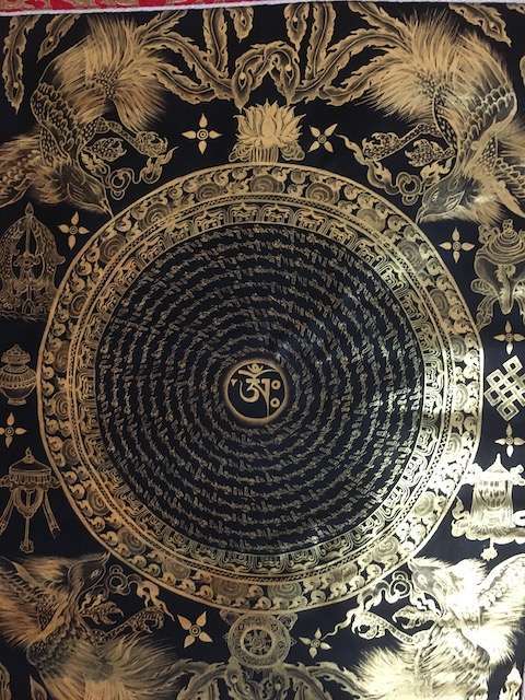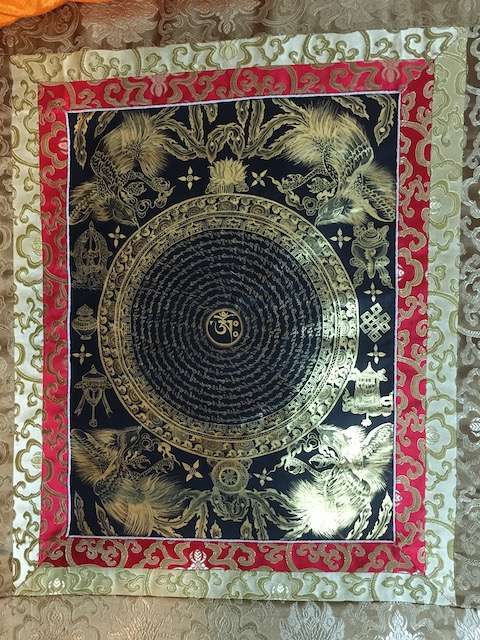 Hand painted Om mane padme hum thangka 34x46cm picture size,