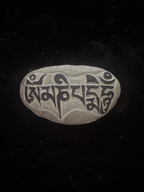 Average size 11 x7cm Om mane padme hum carving with Buddha eyes on reverse