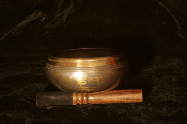 Etched Buddha eye/ Eight signs singing bowl 15cm With lotus at centre. 5 Metals