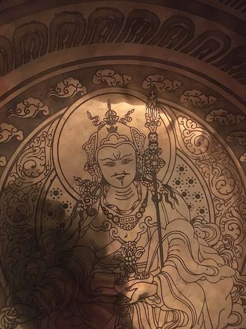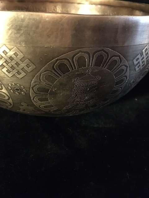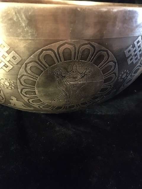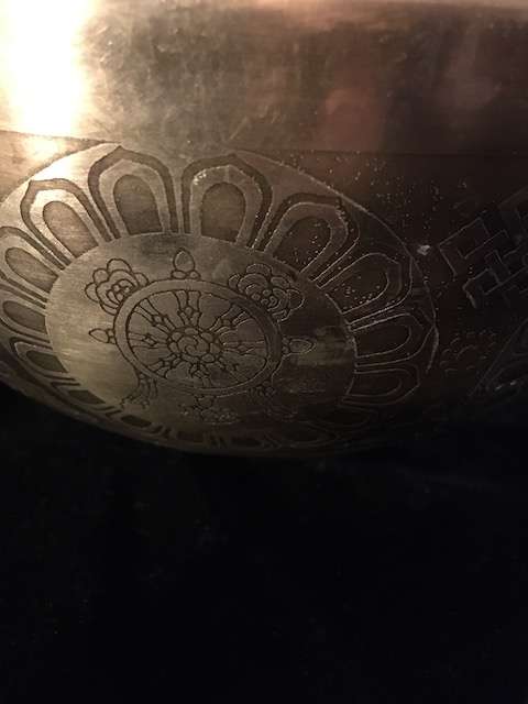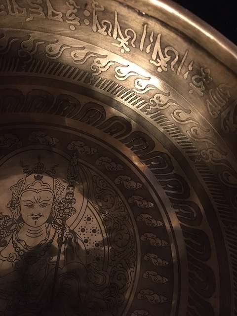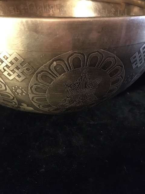 Padmasambhava etched singing bowl 25cm wide, 12cm high