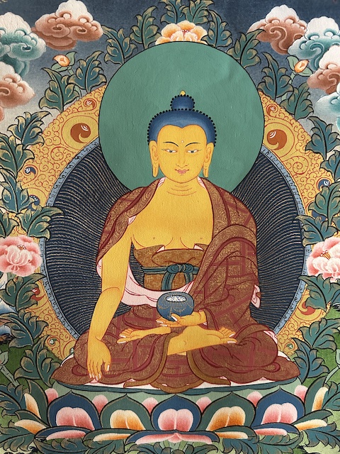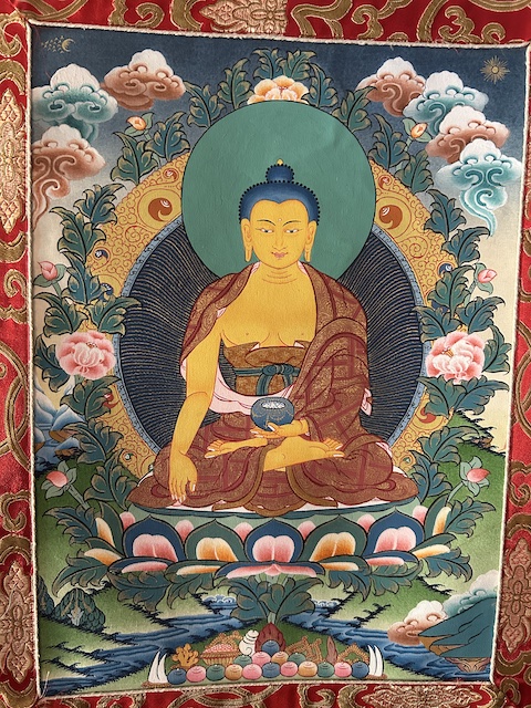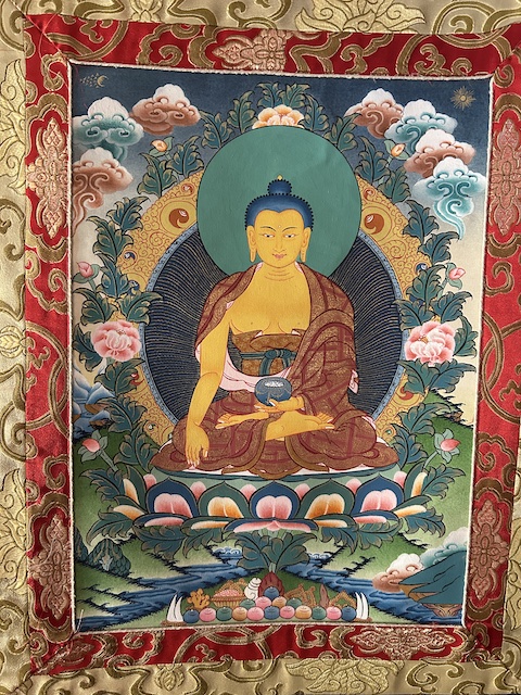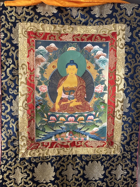Shakyamuni Buddha Thangka 28×38 cm picture size 53 x86cm with brocade surround