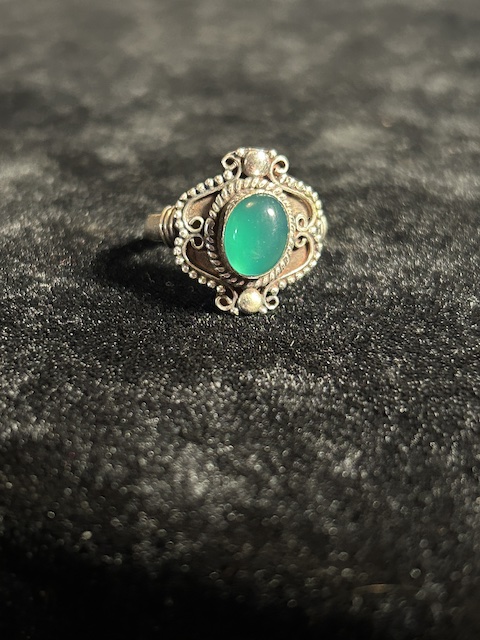 SILVER GREEN ONYX Ring 1.8 cm at widest