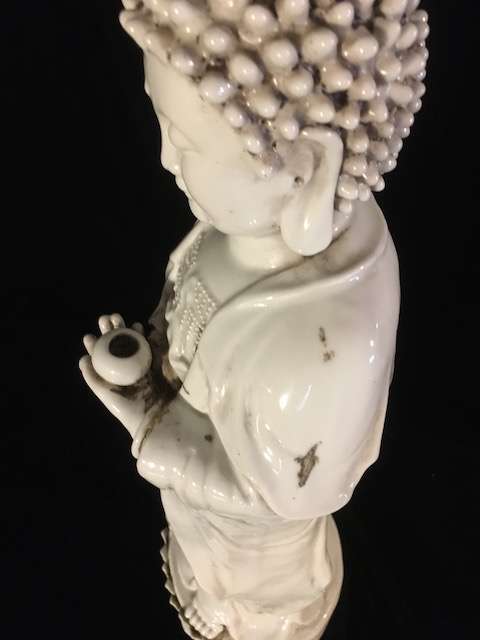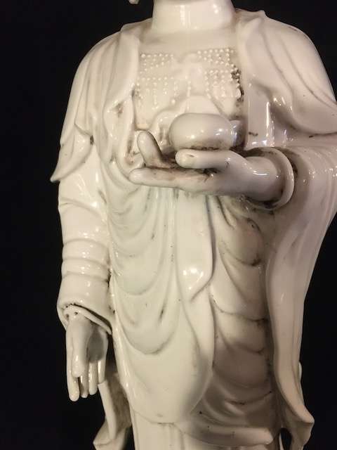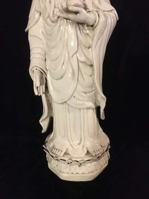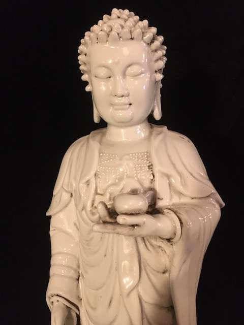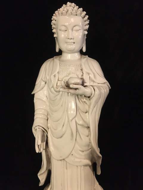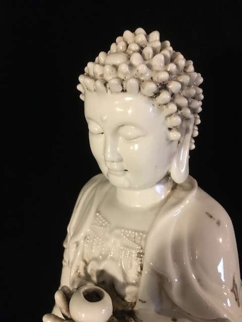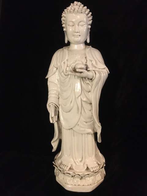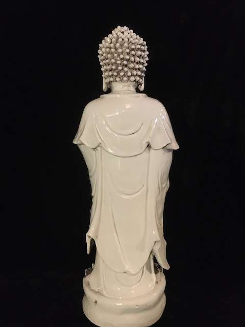 Chinese blanc de chine porcelain Buddha figure with impressed Chinese characters on base. 20th century