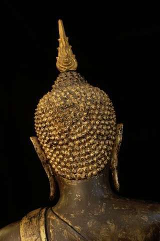 Lovely Thai Buddha statue in Bronze with gold leaf (Much of which has faded/worn away)