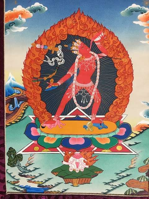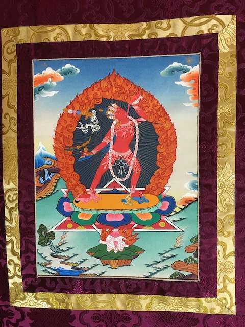 Vajrayogini Thangka 24x33cm picture size, 48x75cm with brocade