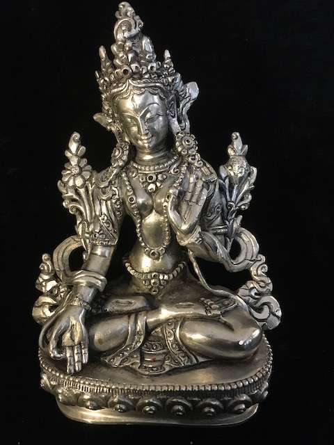 White Tara statue 15cm. White tara statue with Silver finish 6″