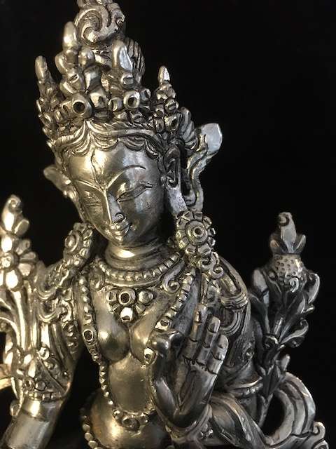White Tara statue 15 cm. With Silver finish in copper