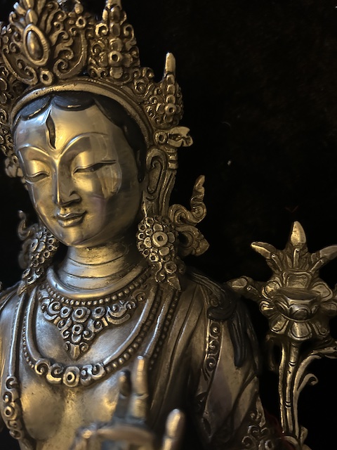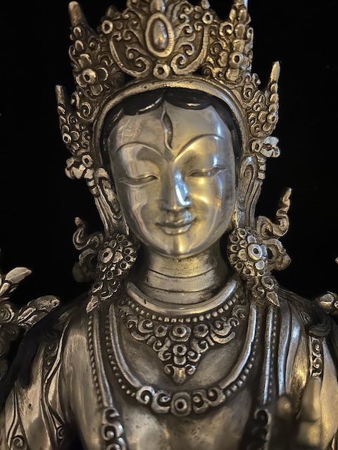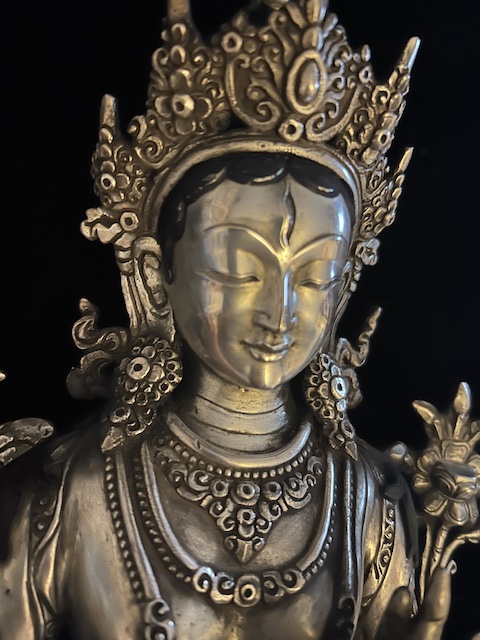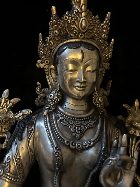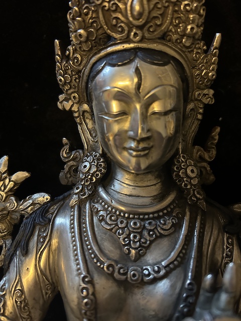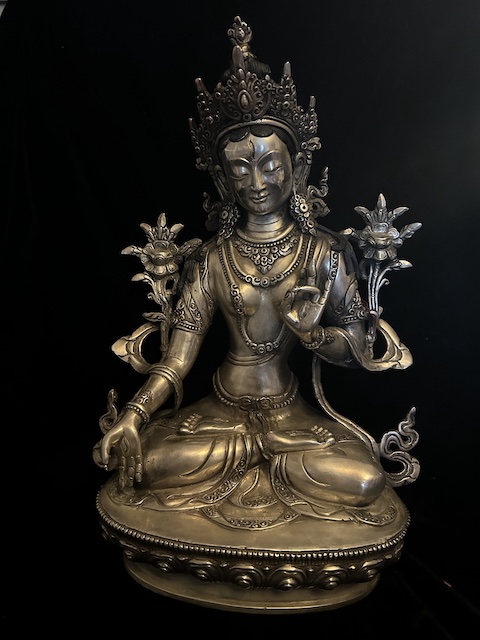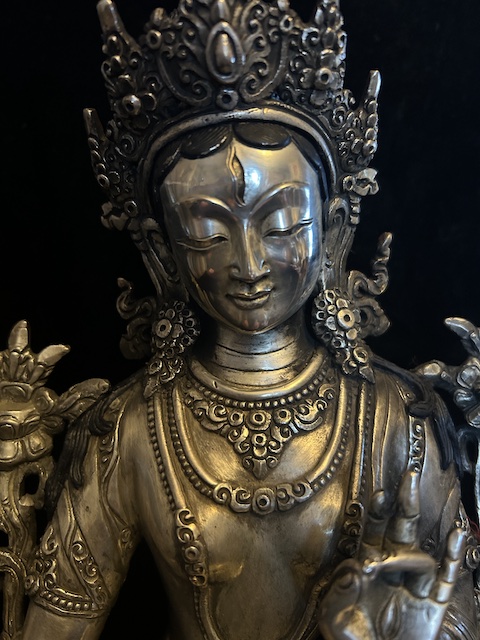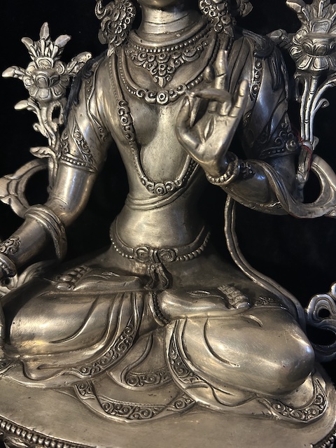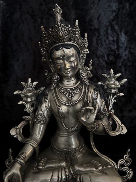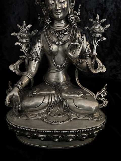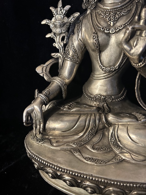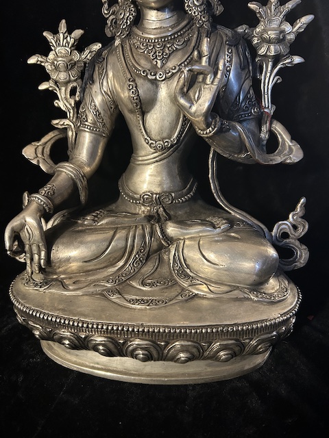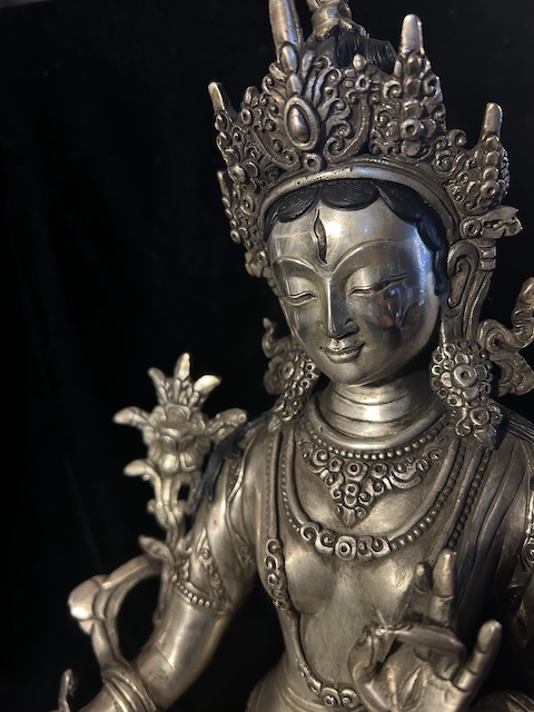 White Tara statue 30cm Copper with silver finish
