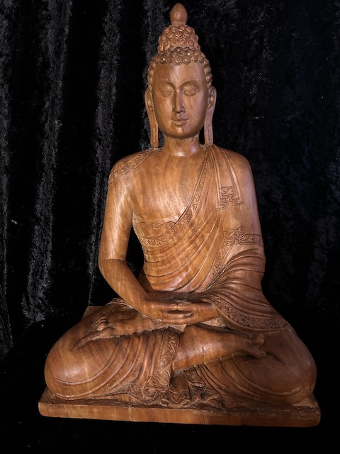 WOOD AMITABHA BUDDHA STATUE 59cm